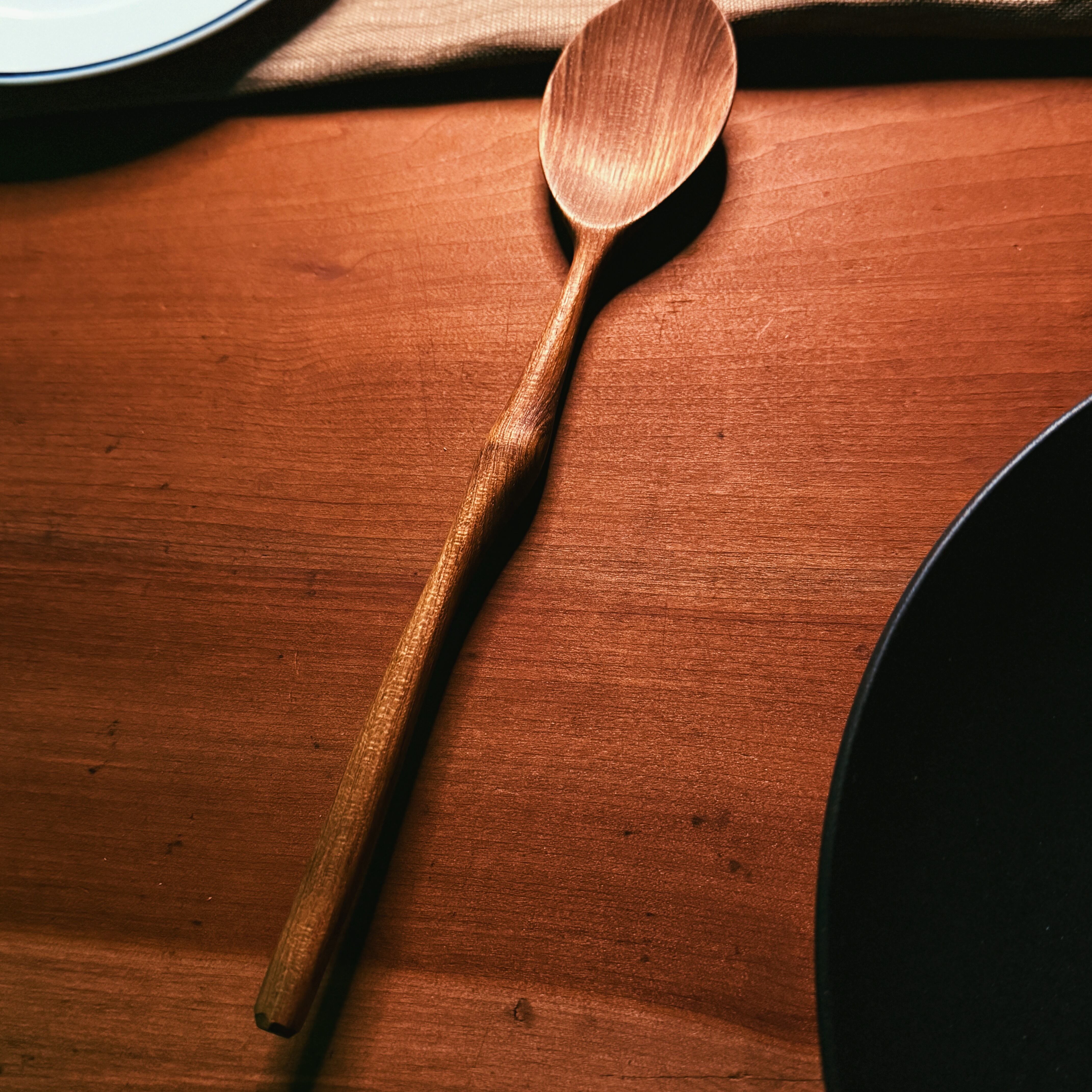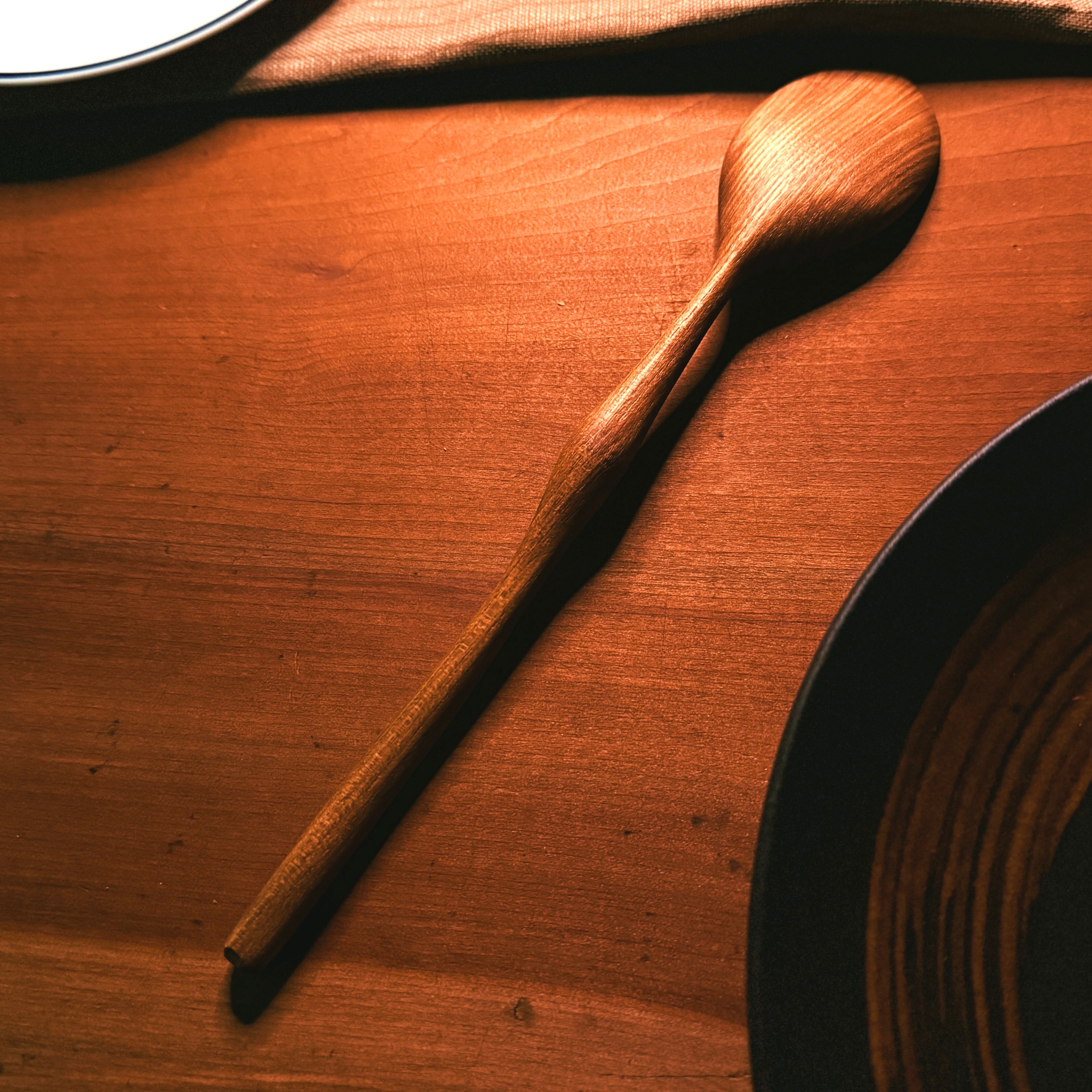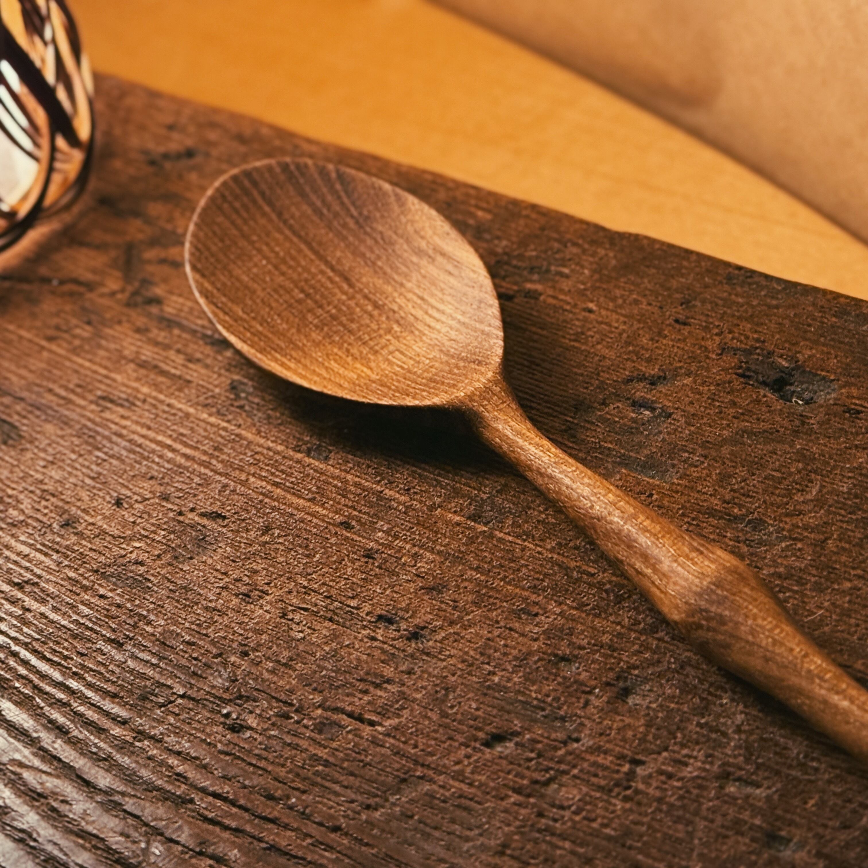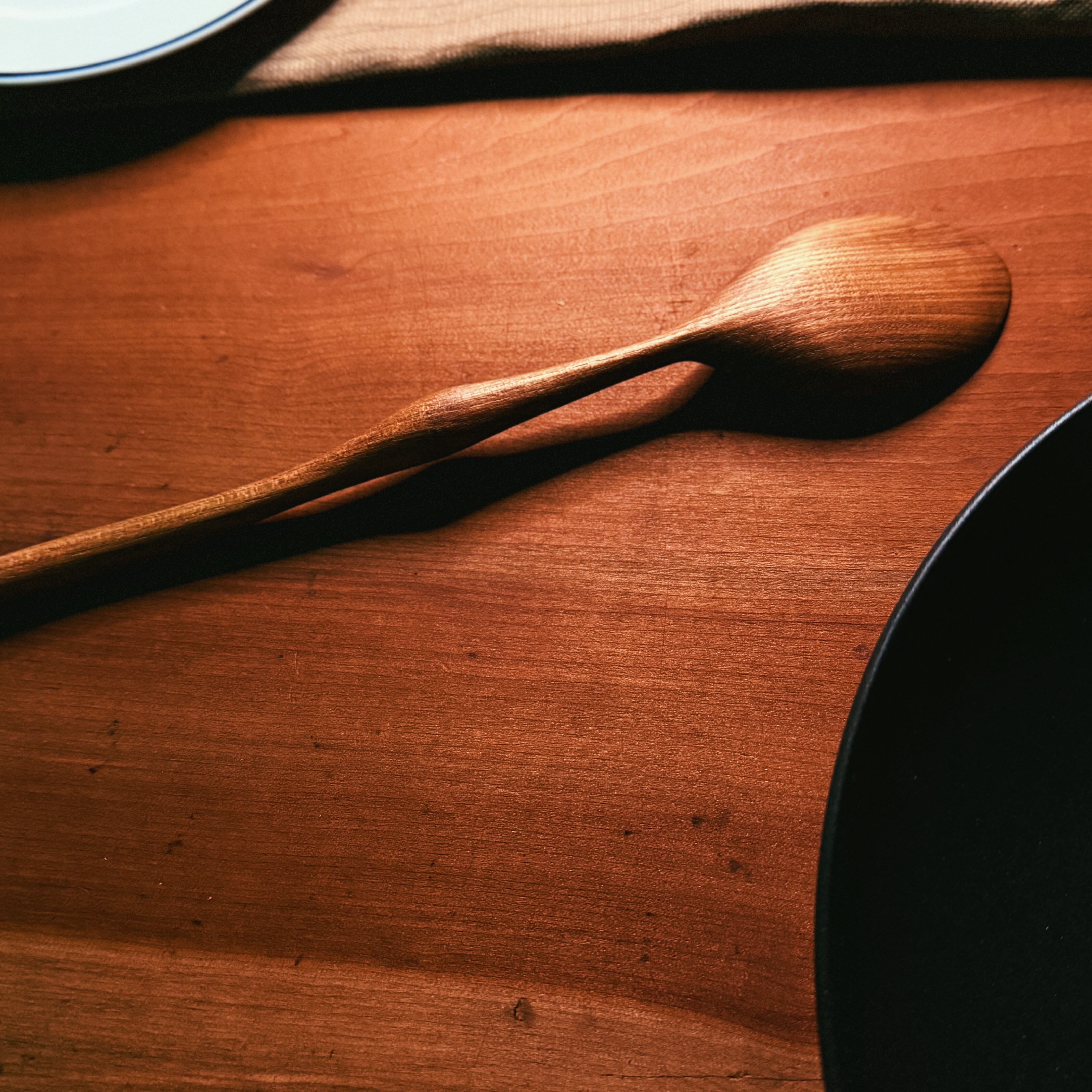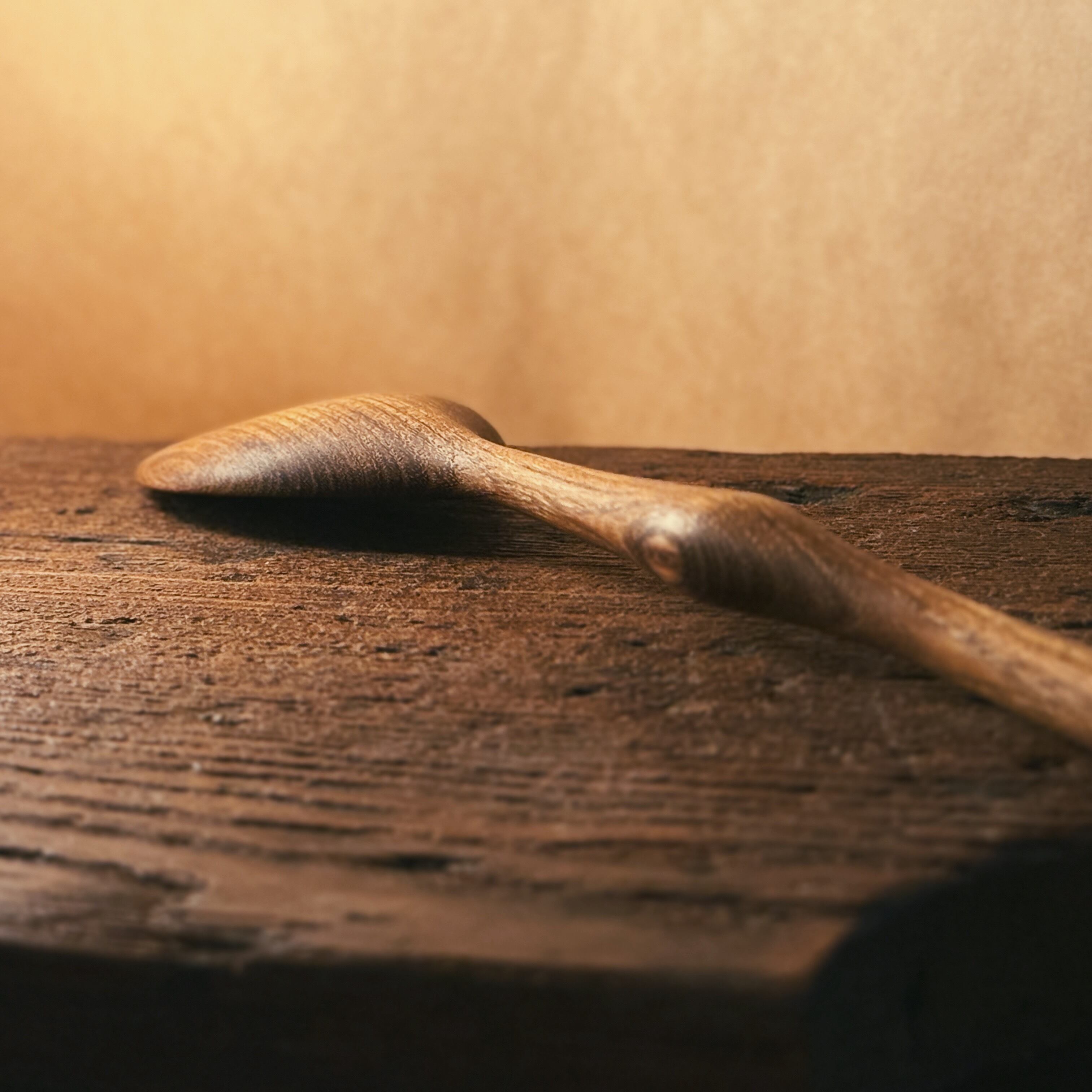 丁寧に削り出したこのスプーンは、やわらかな曲線と手に馴染む優しい手触りが特長。槐特有の落ち着いた飴色の木肌は、使うほどに味わいが深まり、世界にひとつの風合いへと育っていきます。