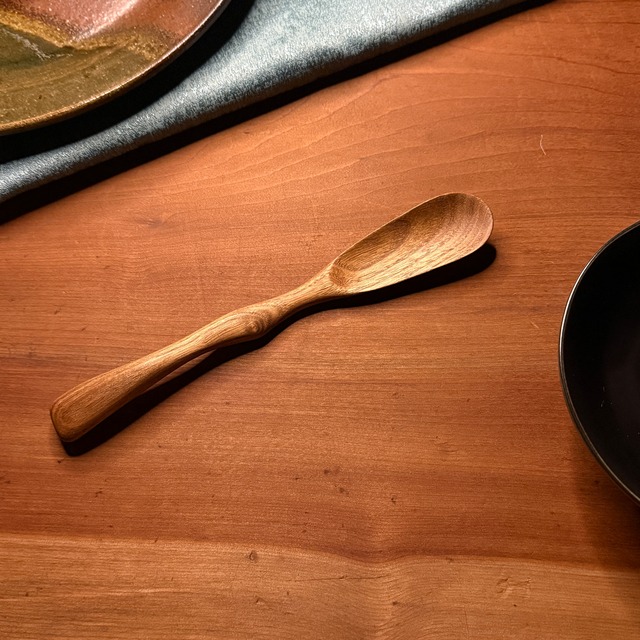 柄を長く仕上げているので 料理の道具やパフェなどのデザート、 ディナースプーンとしてもご利用できます。 縁起のいい木として古くから親しまれてきた槐(えんじゅ)の木を使用しています。 素材:槐(えんじゅ) 仕上げ:胡桃オイル サイズ:全長21cm × 幅2.5cm × 柄15.7cm (※多少の誤差があります) ✴︎ 在庫・販売について ✴︎ こちらの作品は マルシェでも販売を行っております。 そのため、ご注文のタイミングによっては 「完売」となる場合がございます。 一点ものの特性上、何卒ご理解いただけますと幸いです。 【お取り扱いのご注意】 このスプーンは天然木・天然オイル仕上げのため、長く心地よくお使いいただくために、以下の点にご注意ください。 ・使用後はやわらかいスポンジで優しく手洗いし、水気をしっかり拭き取ってください。 ・食洗機・電子レンジ・乾燥機のご使用はお控えください。 ・長時間のつけ置き洗いや、湿気の多い場所での保管は木の劣化につながります。 ・乾燥が気になる場合は、天然オイル(くるみ油・えごま油など)を布に取り、軽く拭いて保湿してあげると長持ちします。 ・火気のそばや高温になる場所には置かないでください。 自然の素材を生かしたやさしいスプーンです。 時間とともに変化する木の風合いをお楽しみいただきながら、末長くご愛用いただけますように。