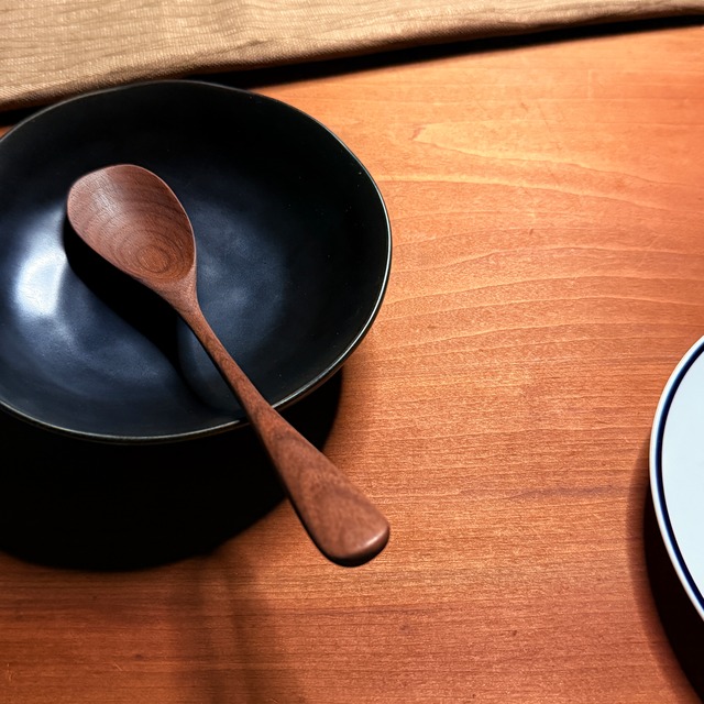 シンプルなラインのスプーン。 深めのボウル部分はスープやシリアルにも使いやすく持つたびに手になじみます。 特徴 ・日常使いにちょうどいい長さ ・すくいやすい深さ ・和洋どちらの食卓にも合うデザイン 素材:ウォールナット 仕上げ:胡桃オイル サイズ:全長19cm × 幅3.6cm × 柄12.5cm (※多少の誤差があります) 【在庫・販売について】 こちらの作品は 実店舗・マルシェでも展示・販売を行っております。 そのため、ご注文のタイミングによっては 「完売」となる場合がございます。 【お取り扱いのご注意】 このスプーンは天然木・天然オイル仕上げのため、長く心地よくお使いいただくために、以下の点にご注意ください。 ・使用後はやわらかいスポンジで優しく手洗いし、水気をしっかり拭き取ってください。 ・食洗機・電子レンジ・乾燥機のご使用はお控えください。 ・長時間のつけ置き洗いや、湿気の多い場所での保管は木の劣化につながります。 ・乾燥が気になる場合は、天然オイル(くるみ油・えごま油など)を布に取り、軽く拭いて保湿してあげると長持ちします。 ・火気のそばや高温になる場所には置かないでください。 自然の素材を生かしたやさしいスプーンです。 時間とともに変化する木の風合いをお楽しみいただきながら、末長くご愛用いただけますように。 ※画像に写っているスプーン以外の商品は含まれません。